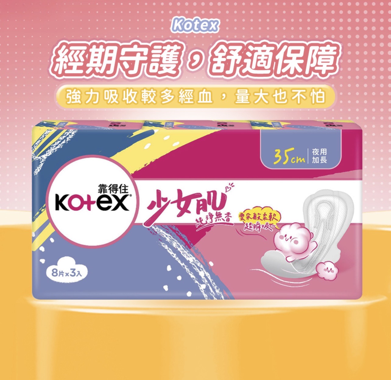Kotex 靠得住 少女肌 純淨無香衛生棉 夜用, 35cm, 24片