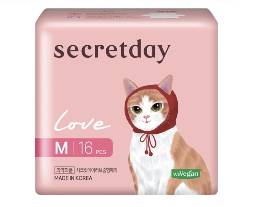 secretday 韓國原裝進口 Love系列 衛生棉 蝶翼型, M(24.5cm), 16片
